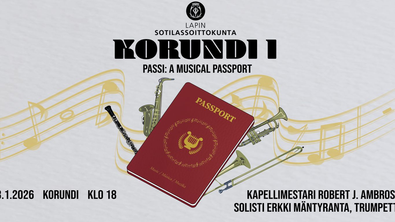 Lapin sotilassoittokunnan Korundi -konserttisarjan vuoden 2026 ensimmäisessä konsertissa kuulijalle ojennetaan musiikillinen passi, joka avaa pääsyn mielenkiintoiselle ja monipuoliselle musiikkimatkalle ympäri maailmaa. Konsertin ohjelmassa on sävellyksiä Yhdysvalloista, Thaimaasta, Suomesta, Islannista ja Sveitsistä. Solistina kuullaan Lapin sotilassoittokunnan trumpetistia Erkki Mäntyrantaa, joka tulkitsee Jukka Linkolan sävellyksen Tango Tarantella.